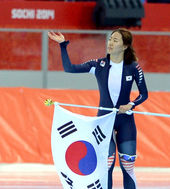 2014.02.12 01: 02올림픽 2연패 이상화,'태극기를 내 가슴에'