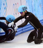 2014.02.13 22: 11넘어진 이호석,'남자 쇼트트랙 대표팀 5000m 계주 결승전 진출 실패'