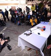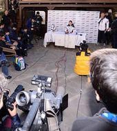 2014.02.14 16: 13수많은 취재진 앞에서 기자회견을 하는 이상화