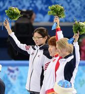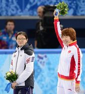 2014.02.15 22: 11은메달 심석희, 금메달 저우 양과 플라워 세레모니
