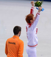 2014.02.15 22: 19플라워 세레모니 금메달 안현수, '시선은 누구에게?'
