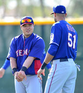 2014.02.19 08: 00동료들과 이야기 나누는 추신수