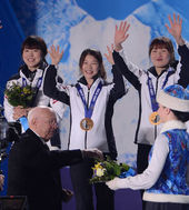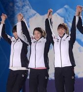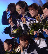 2014.02.19 01: 50쇼트트랙 계주 낭자들,'시상대 위에서 손에 손 맞잡고!'