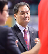 2014.02.20 19: 31경기 전 선수들과 인사 나누는 모비스 유재학 감독