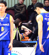 2014.02.20 19: 32차재영,'부상으로 들것에 실려 코트 빠져나가'