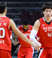 2014.02.21 19: 12오세근-박찬희,'오늘은 LG잡고 순위 반등 노리자'