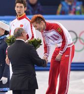 2014.02.22 04: 24'빅토르 안'안현수를 부럽게 바라보는 우다징'