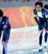 2014.02.23 00: 33팀추월 레이스 이끄는 이승훈