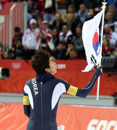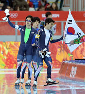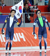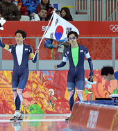 2014.02.23 00: 16'잘했다' 팀추월 이승훈, '태극기 휘날리며'