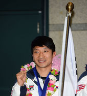 2014.02.25 17: 31이규혁,'태극기 펄럭이며 환한 미소로 파이팅!'