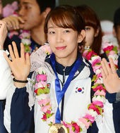 2014.02.25 17: 55조해리,'금빛 미소로 손 인사'