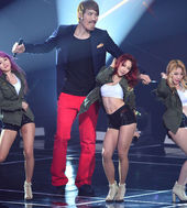 2014.03.04 18: 13최홍만, '걸그룹 MOA와 뜨거운 퍼포먼스'