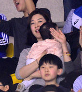 2014.03.09 15: 53박철우 아내 신혜인, '딸과 남편 응원왔어요'