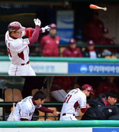 2014.03.11 14: 18방망이 날린 강정호,'더그아웃도 조심하세요'