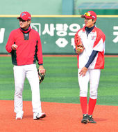 2014.03.11 11: 51이종욱-김선우,'이제는 각자 다른 유니폼 입고'
