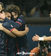2014.03.13 07: 16'동점골' 마르퀴뇨스, PSG 동료들 품에 안겨 기쁨 만끽