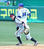 2014.03.14 13: 28'1루수' 정성훈,'송구 받기 쉽지 않네'