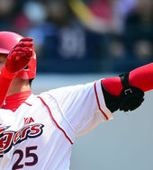 2014.03.16 14: 21첫 홈런포 나바로,'맞아도 좋아~'
