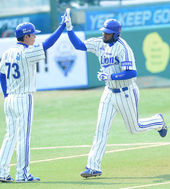 2014.03.16 14: 23류중일 감독,'나바로, 첫 홈런 축하해'