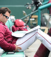 2014.03.19 12: 38나이트, '더그아웃에서 신문 보며 선발 준비'