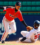 2014.03.21 14: 33김주찬-이대형,'필의 적시타로 홈밟았어!'