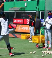 2014.03.21 11: 01고영민,'태균 형님, 오늘도 홈런 기대하세요'