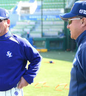 2014.03.22 11: 30류중일-김경문,'봄볕 맞으며 대화를'