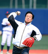 이병석 회장,'시구로 2014 고교야구 주말리그 시작을 알립니다'