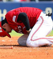 2014.03.23 14: 16손가락에 공맞고 고통스러워 하는 KIA 신종길