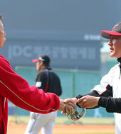 2014.03.23 11: 25인사 나누는 KIA 선동열 감독-LG 김기태 감독