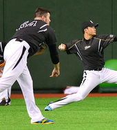 2014.03.28 16: 43외야에서 몸 푸는 '끝판대장' 오승환
