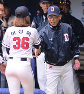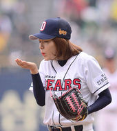송일수 감독,'시구 이상화! 못하는게 없네요'