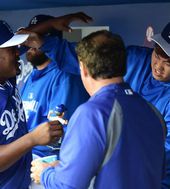 2014.03.29 11: 31류현진-유리베, '장난의 끝은 화해의 악수'