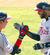 2014.03.30 15: 59클레이,'김태균과 하이파이브!'