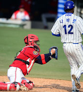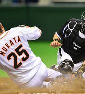 2014.03.30 15: 35한신 포수 후지이,'홈베이스 완벽하게 막았어'