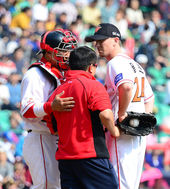 2014.03.30 15: 00한신 니시오카 부상에 얼어붙은 선수들