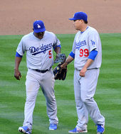 2014.03.31 12: 20류현진 격려하는 유리베,'잘 할수 있어'