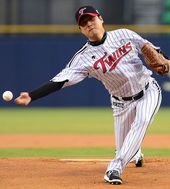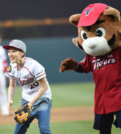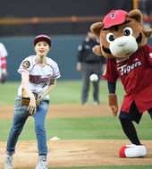 2014.04.02 18: 41거미 승리 기원 시구,'와인드업 자세 좋고'
