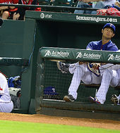 2014.04.03 12: 13더그아웃에서 경기 지켜보는 추신수-다르빗슈