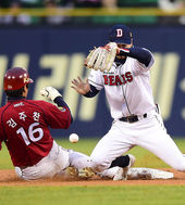 2014.04.04 19: 26박종윤,'폭투 틈타 2루로 몸을 날려!'