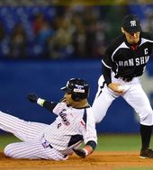 2루서 아웃되는 야쿠르트 발렌틴