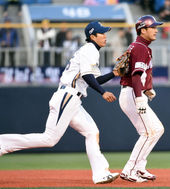 2014.04.05 18: 32이택근 주루 미스,'득점 찬스를 살리지 못하네'