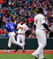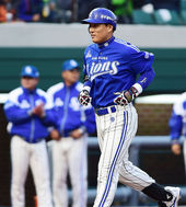 2014.04.05 17: 47이승엽,'투런포 날리고 환한 미소로 홈 밟아'