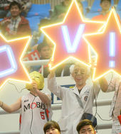 2014.04.05 15: 17가면 쓴 모비스 응원단,'GO V5!'