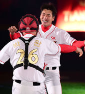 2014.04.05 21: 31김광현-박경완,'감격의 2010년 우승 세레모니'