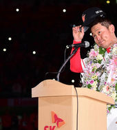2014.04.05 21: 37박경완,'은퇴식에서 2010년 우승 세레모니 재연'