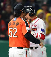 2014.04.05 19: 53최만호 코치,'(유)한준이 악수 한번하자'