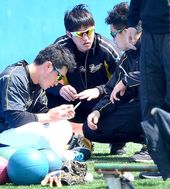 2014.04.06 12: 48오승환,'조심스럽게 다듬는 오른손 손톱'