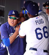 2014.04.06 11: 04류현진, '유리베-푸이그 덕분에 웃는다'