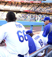 2014.04.06 07: 29유리베-푸이그, '류현진, 기분 좀 풀렸어?'
